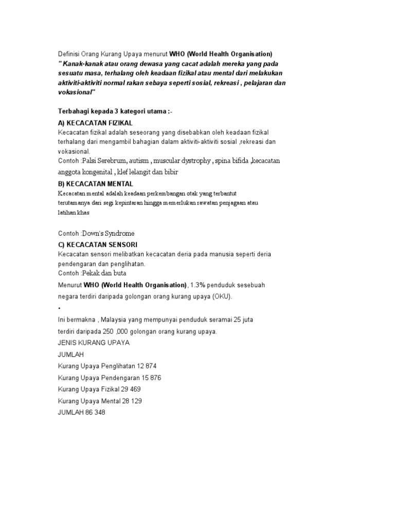 Definisi Orang Kurang Upaya menurut WHO World Health Organisation Kanak-kanak atau orang dewasa yang. Up to 24 cash back Definisi.